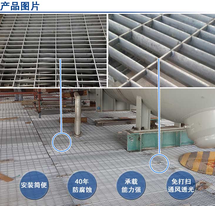 2.防腐能力強,30-50年的使用年限。 3.對插鋼格柵板的強度高,結(jié)構(gòu)輕。 4.對插鋼格柵板便于安裝、拆卸等。 5.通風(fēng),采光,散熱,防滑,防爆性好。 6.不積污物、不積雨雪、不積水、自清潔、易于維護。